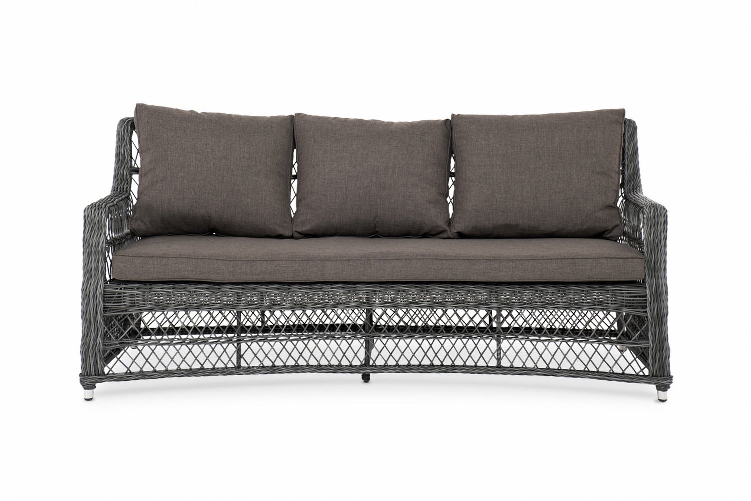 Трехместный диван Гранд Латте имеет размеры 187х85х83 см и покрашен в темно-серый (графитовый) цвет – универсальный оттенок для оформления беседок и веранд. Диван просторный, вмещает несколько человек, обладает удобными подлокотниками и слегка наклоненной спинкой – идеальная мебель для наслаждения природой, чтения книг или разговоров с близкими за столом на открытом воздухе.